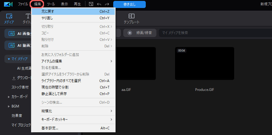 分割前の動画の状態に戻したい場合はどうすればいいのか・・・、と言うと「書き出し後でも『元に戻す』でこれまでの操作を戻せる」のです。